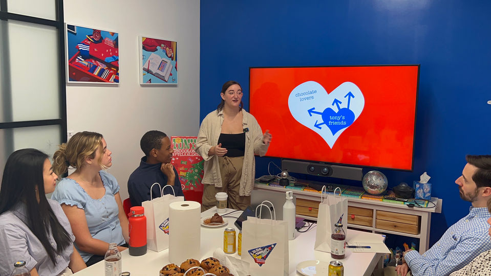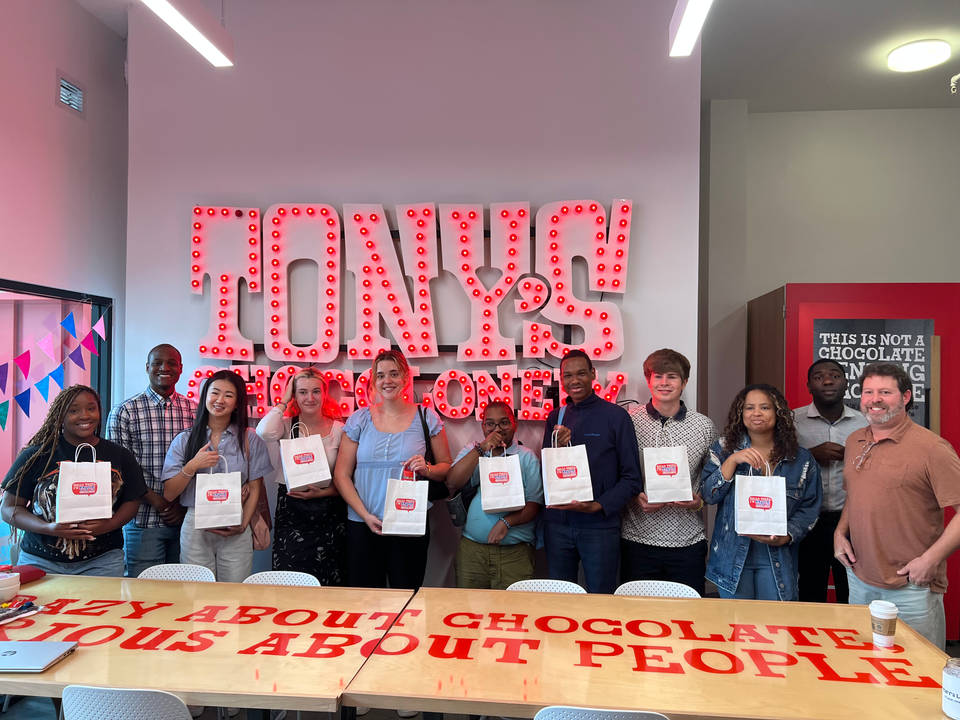 Noel Davidson from Tony’s Chocolonely teaches the Fellows about their mission to end forced childhood labor in the cocoa industry in West Africa.